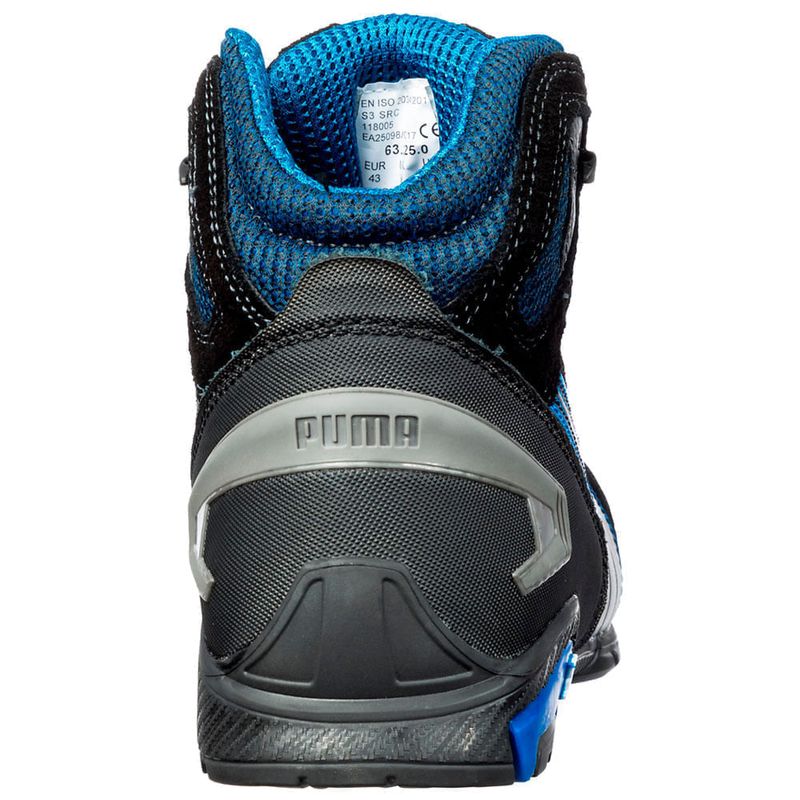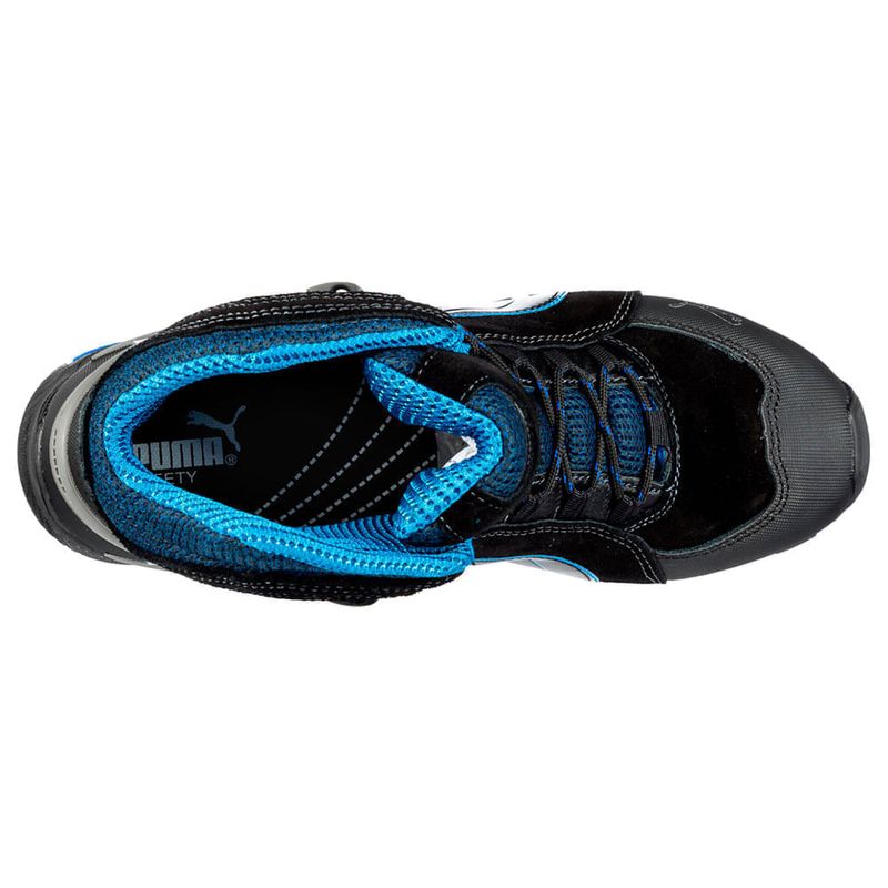 Botín Rio Black Mid de Puma Safety, un zapato de seguridad elegante y de alta protección con una clara inspiración en el estilo de vida, que se adapta perfectamente a nuestro entorno de trabajo actual. Suela antideslizante y antiperforante. Fabricado para absorber impactos. Impermeable y libre de elementos metálicos.