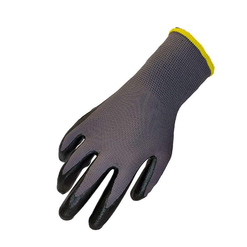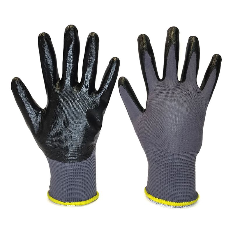 Malla sin fisuras en poliéster de calibre 13. Revestimiento en nitrílica negro de la palma de la mano y del pulgar, para mejor protección de la mano. Máxima resistencia a la abrasión (nivel 4/4 de la EN 388).