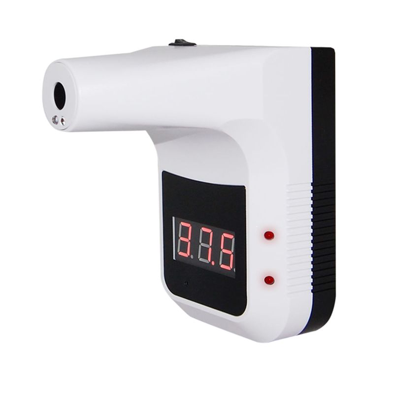 Inteligente termómetro de frente de infrarrojos, puede ser colgado, cinta adhesiva doble cara o soporte fijo.